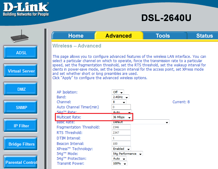 как настроить вайфай dsl-2640u